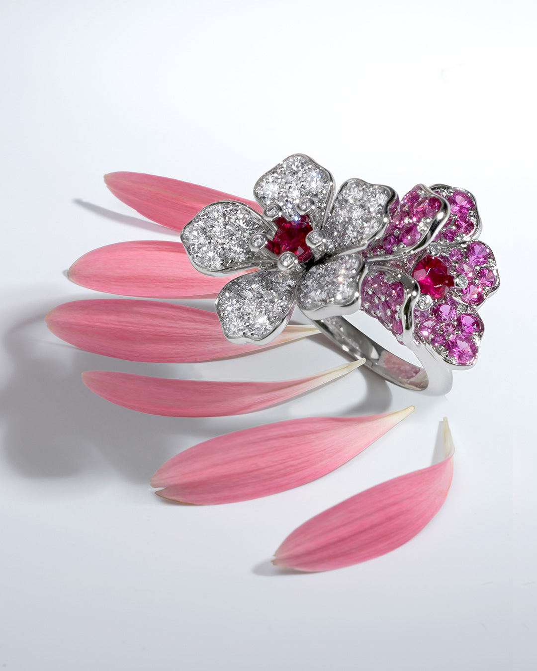 Diamonds, rubies and sapphires illuminate floral designs that capture the elegance, colour and movement of flowers in their most vibrant moment.