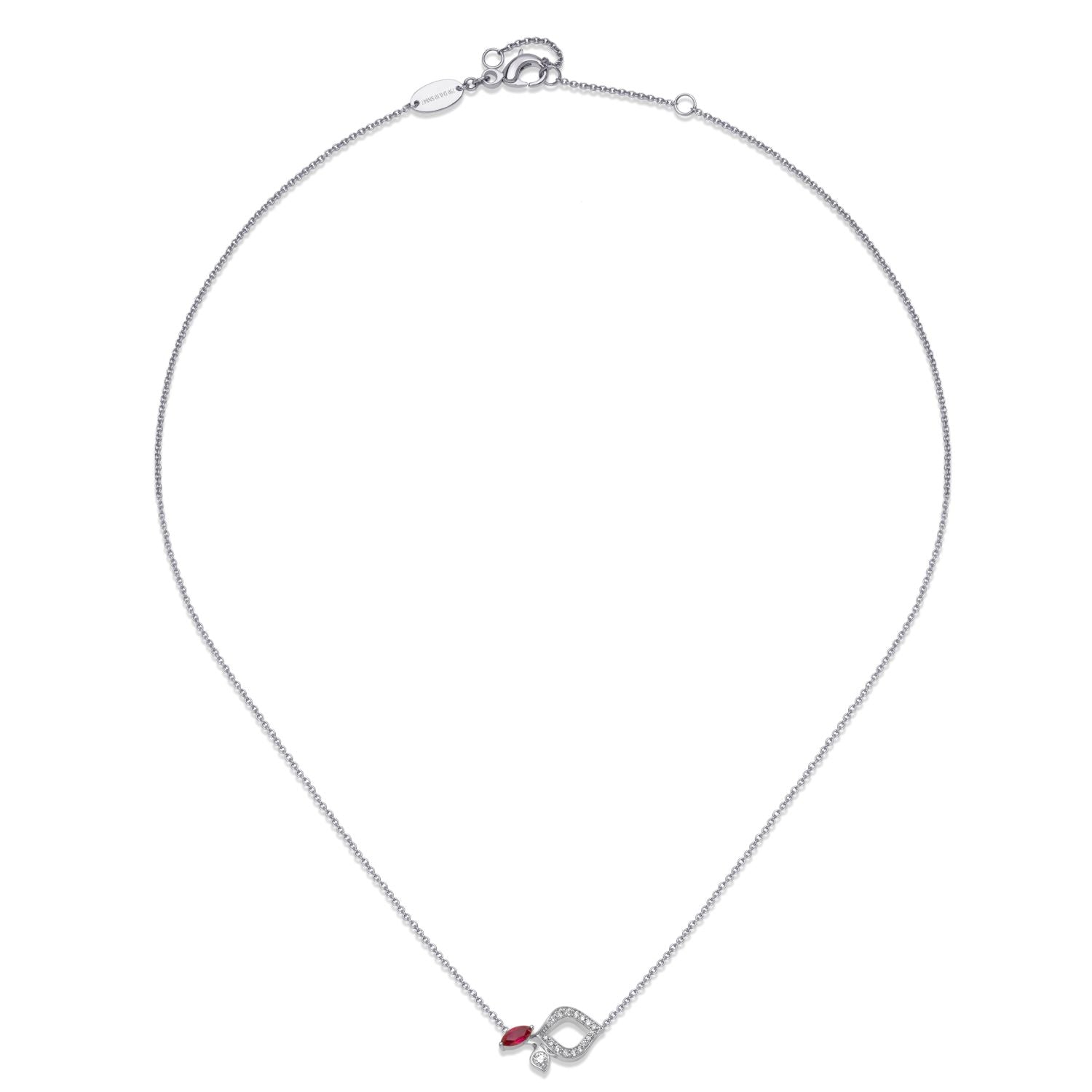 قلادة À Fleur de Paris Petite هي قطعة راقية وبسيطة، مثالية للأناقة اليومية. تتميز هذه القلادة بحجر ياقوت مقطوع على شكل ماركيز وورقة مرصعة بالماس، وهي مصنوعة من الذهب عيار 18 قيراطًا ومصممة لإضافة لمسة من الرقي إلى أي زي. تصميمها خفيف الوزن يجعلها مثالية للارتداء فوق طبقات أو بمفردها كتعبير خفي عن السحر.
