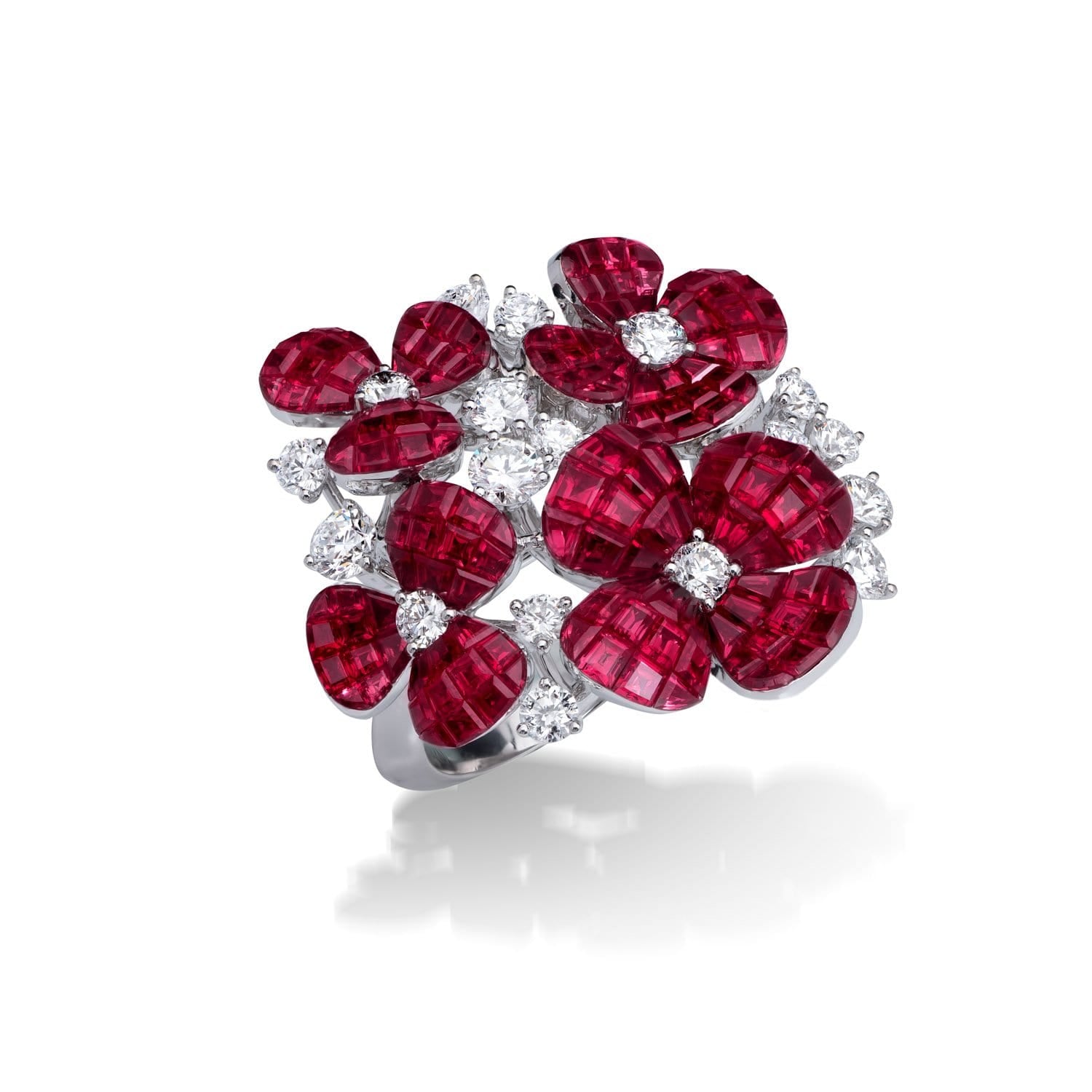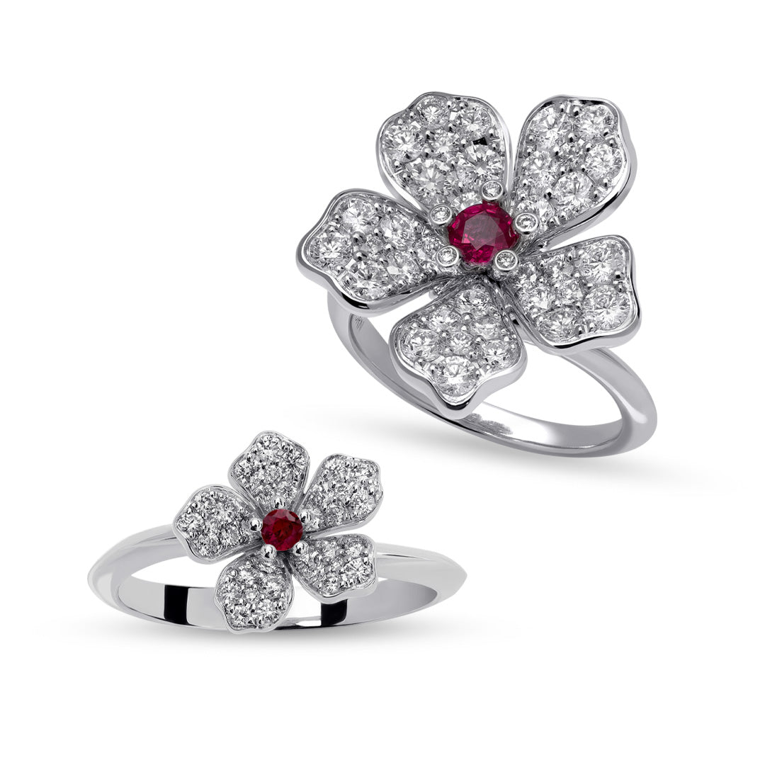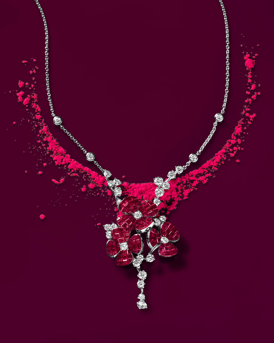 تتجاوز إبداعات "أ فيور دي روزا" معيار الصناعة الحالي المتمثل في الترصيع "الخفي"، فتبدو وكأنها تطفو على بشرتك بسحرٍ لا يدعّمها شيءٌ مرئي. وتتحقق هذه النتيجة الاستثنائية بفضل تقنية ترصيع الأحجار الكريمة "العائمة" الفريدة، والتي تتيح ترصيع الأحجار بشكل غير مرئي على مستويات وزوايا مختلفة.