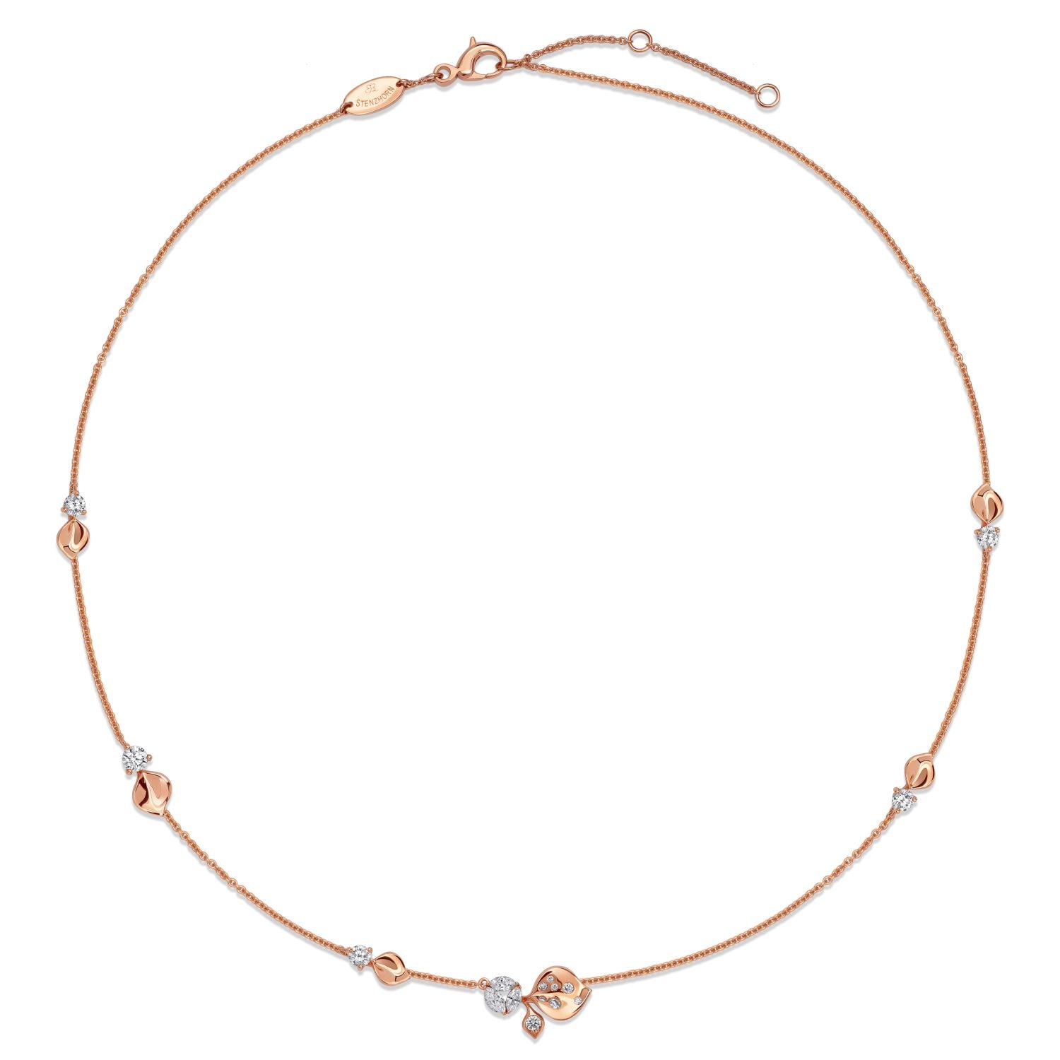 Die Halskette À Fleur de Paris aus Roségold ist eine raffinierte Hommage an die Eleganz der Natur. Sie ist aus 18-karätigem Roségold gefertigt und besticht durch ein zartes Arrangement aus Diamanten im Marquiseschliff und von Blütenblättern inspirierten Motiven, die mit verstreuten Diamanten für einen sanften Schimmer akzentuiert sind. Dank der verstellbaren Länge können Sie die Passform individuell anpassen, so dass sie sich perfekt tragen lässt. Ein zeitloses Accessoire, das mühelos jeden Look aufwertet.