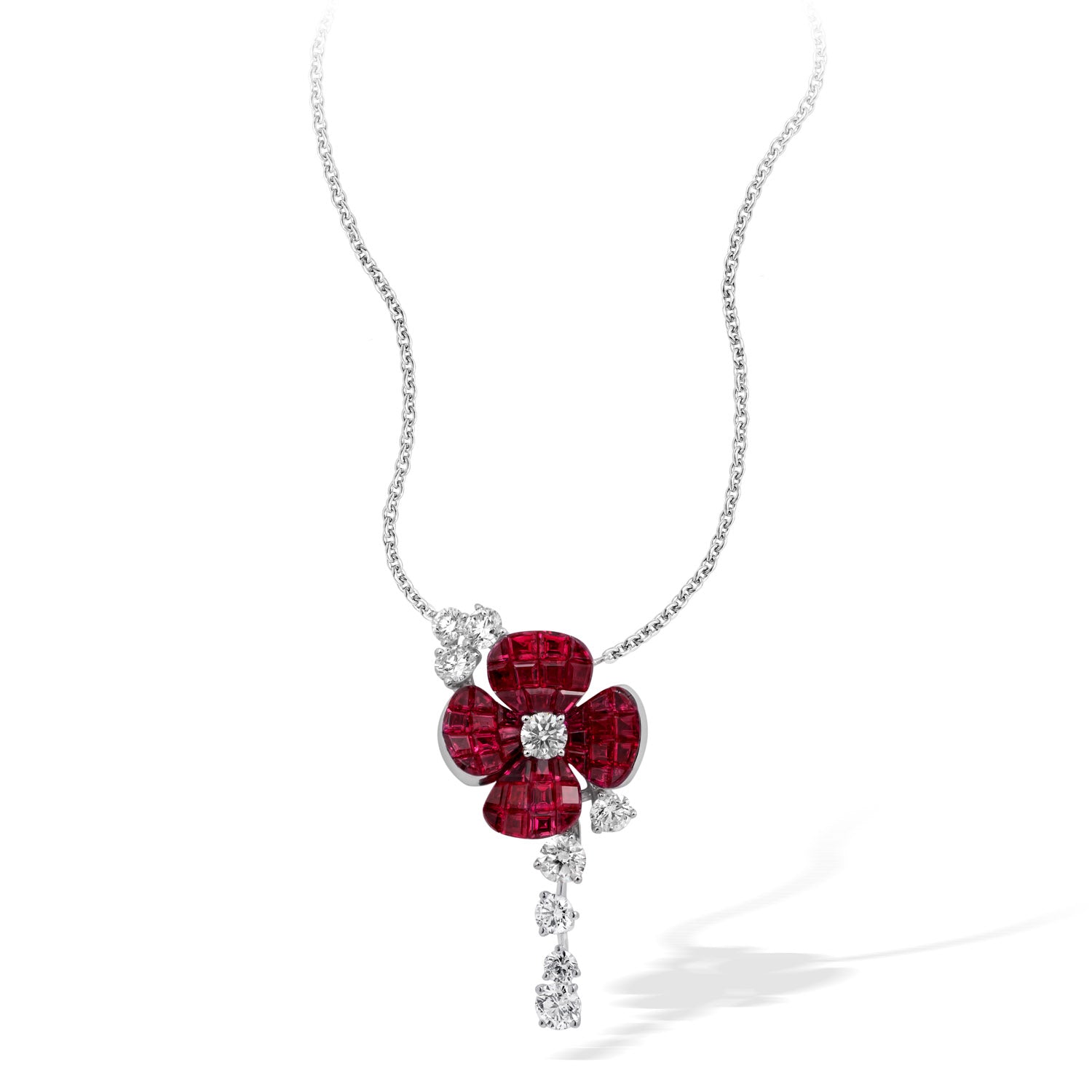 Stenzhorn fängt die kreative Stimmung dieser prächtigen Blumen ein und überträgt ihre Verspieltheit und Fülle durch die Opulenz von Diamanten und Rubinen.
