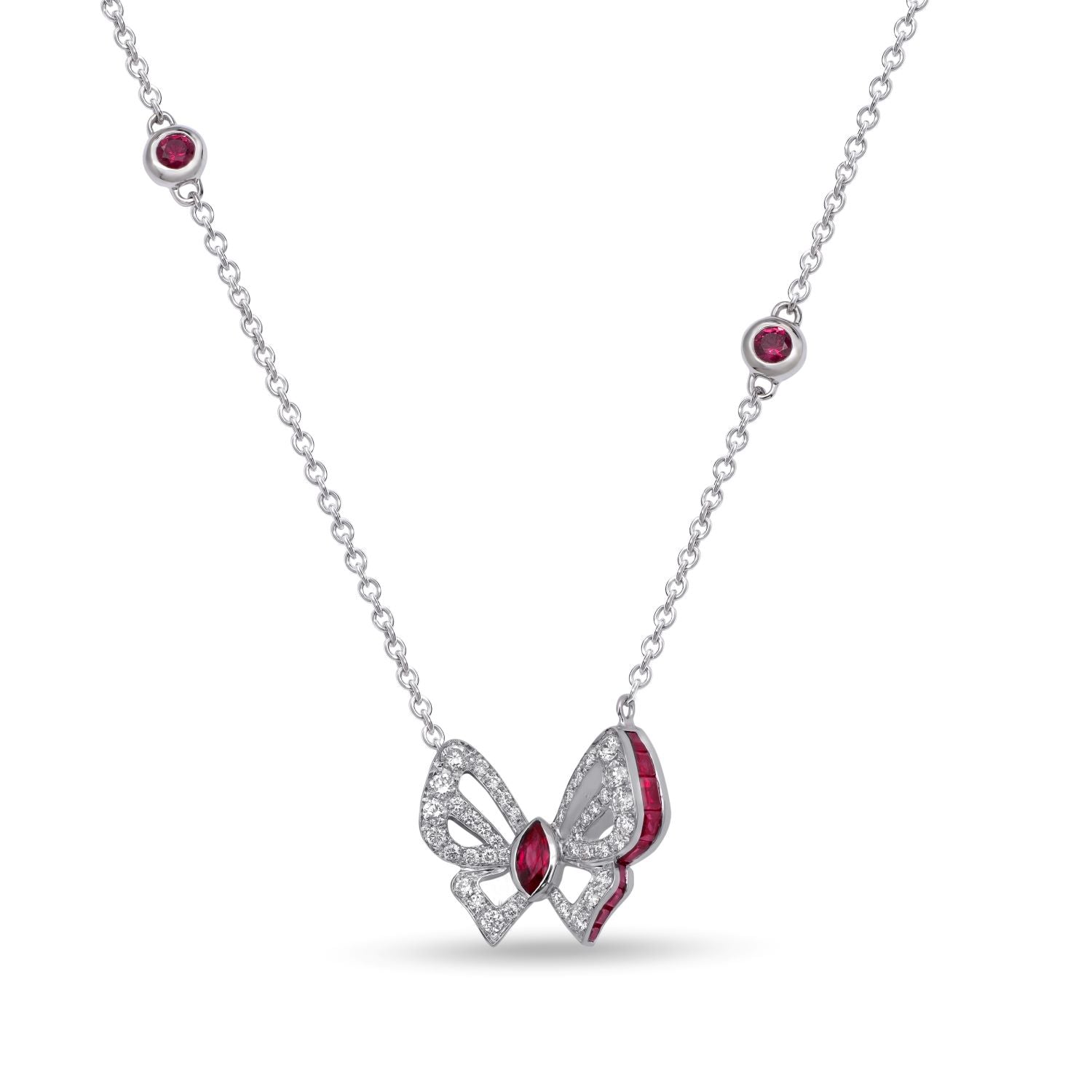 The butterfly’s body is crafted in vivid colour from a single marquise-cut gemstone.