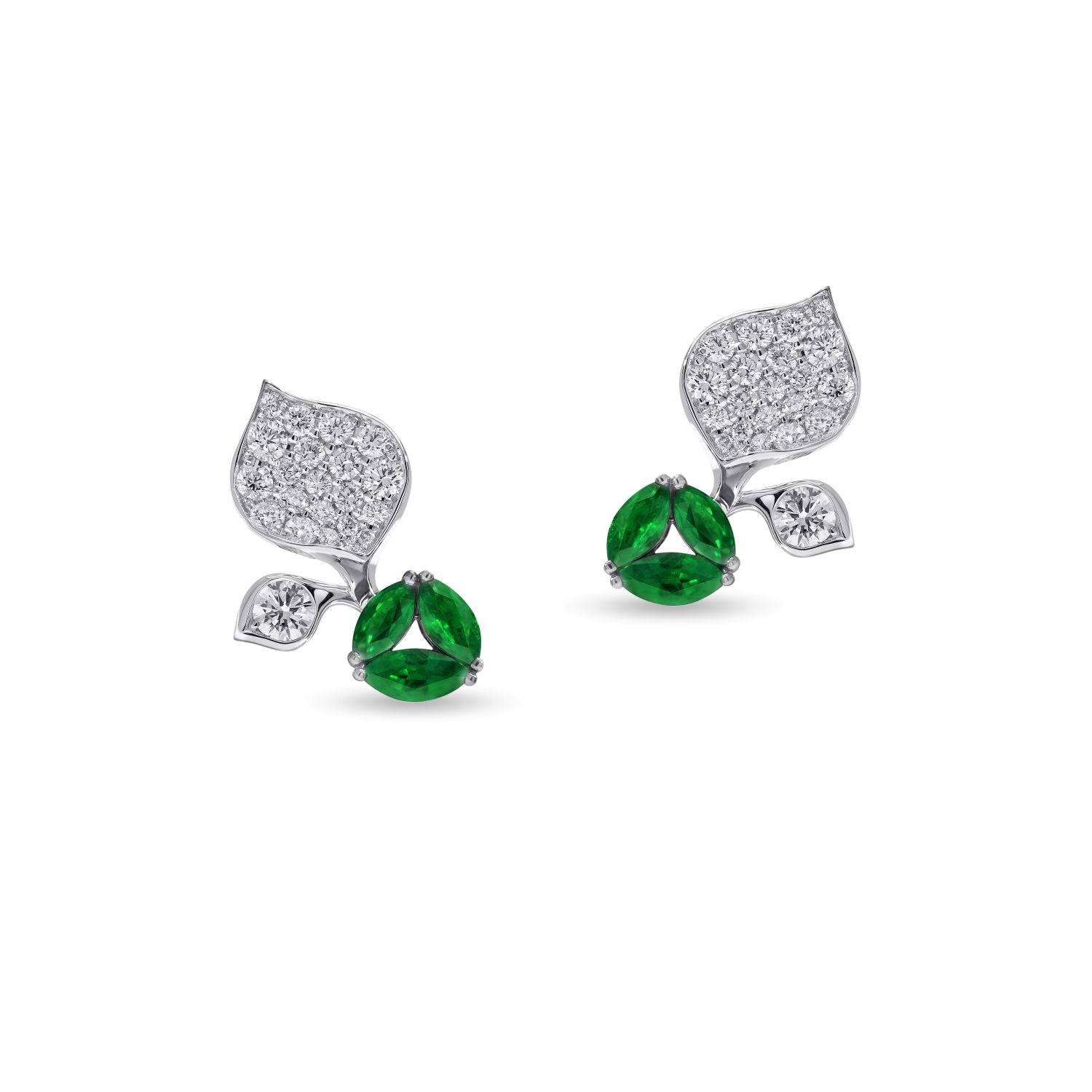 The À Fleur de Paris Stud Earrings are the epitome of understated elegance. Each earring features a pavé-set diamond petal paired with a trio of vivid marquise-cut tsavorites, creating a playful yet sophisticated look. Their delicate size makes them perfect for daily wear while adding a subtle touch of colour and sparkle.
